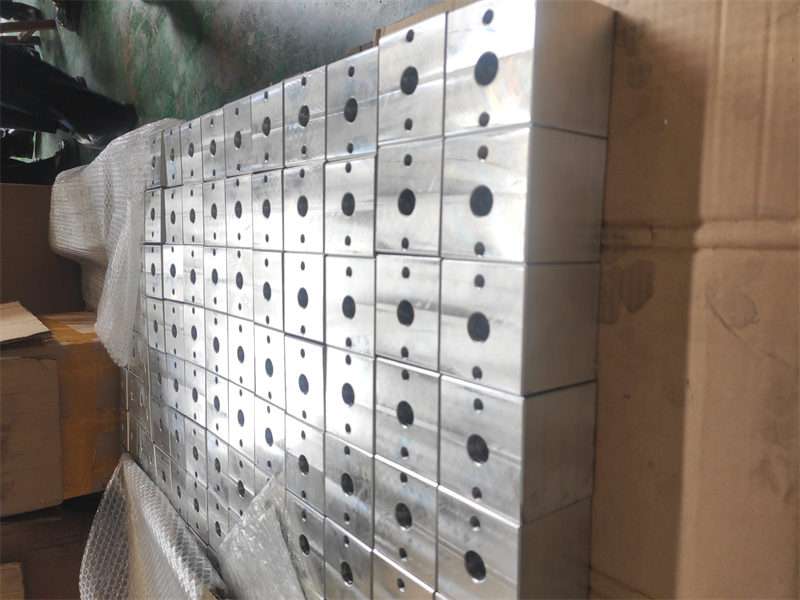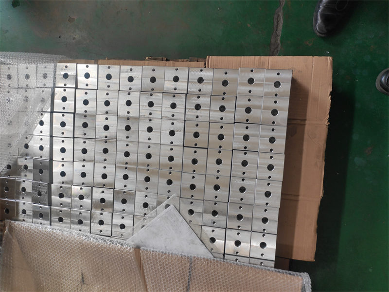 Các bộ phận gia công cơ khí trong hình là khối kim loại có lỗ. Chúng thường được sử dụng làm bộ phận kết nối hoặc lắp đặt trong máy móc, có tác dụng cố định và liên kết. Ưu điểm là độ chính xác kích thước cao, độ ổn định tốt, tính ứng dụng rộng rãi và có thể đáp ứng nhiều nhu cầu lắp ráp khác nhau.