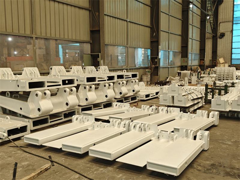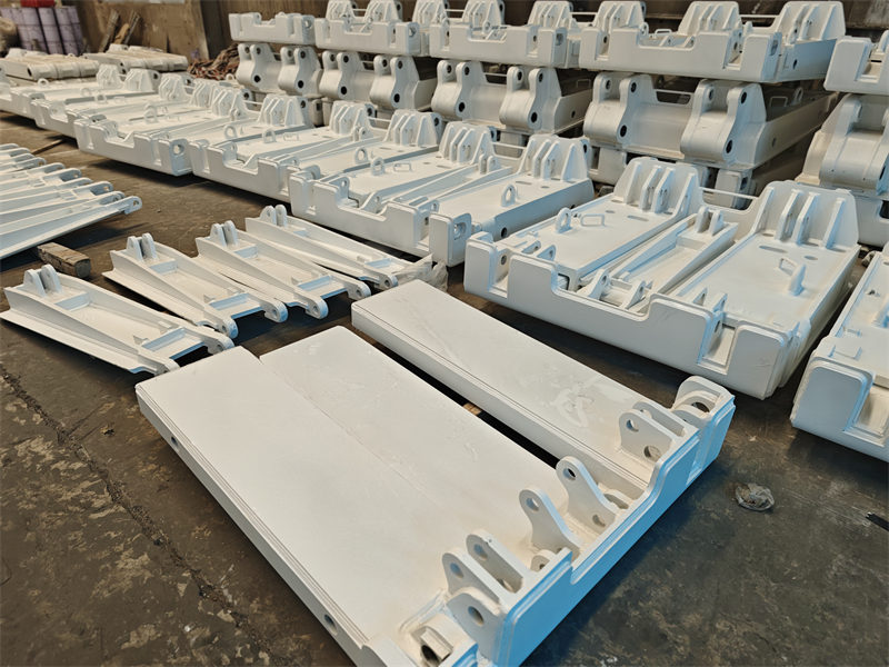 Các bộ phận gia công trong hình là các cấu kiện kết cấu màu trắng của máy móc công trình. Chúng được sử dụng để xây dựng khung chính của máy móc công trình, đóng vai trò hỗ trợ và kết nối. Ưu điểm là độ bền cao, khả năng tạo hình tốt, đáp ứng được các thiết kế cấu trúc phức tạp, đảm bảo tính ổn định tổng thể của máy móc.